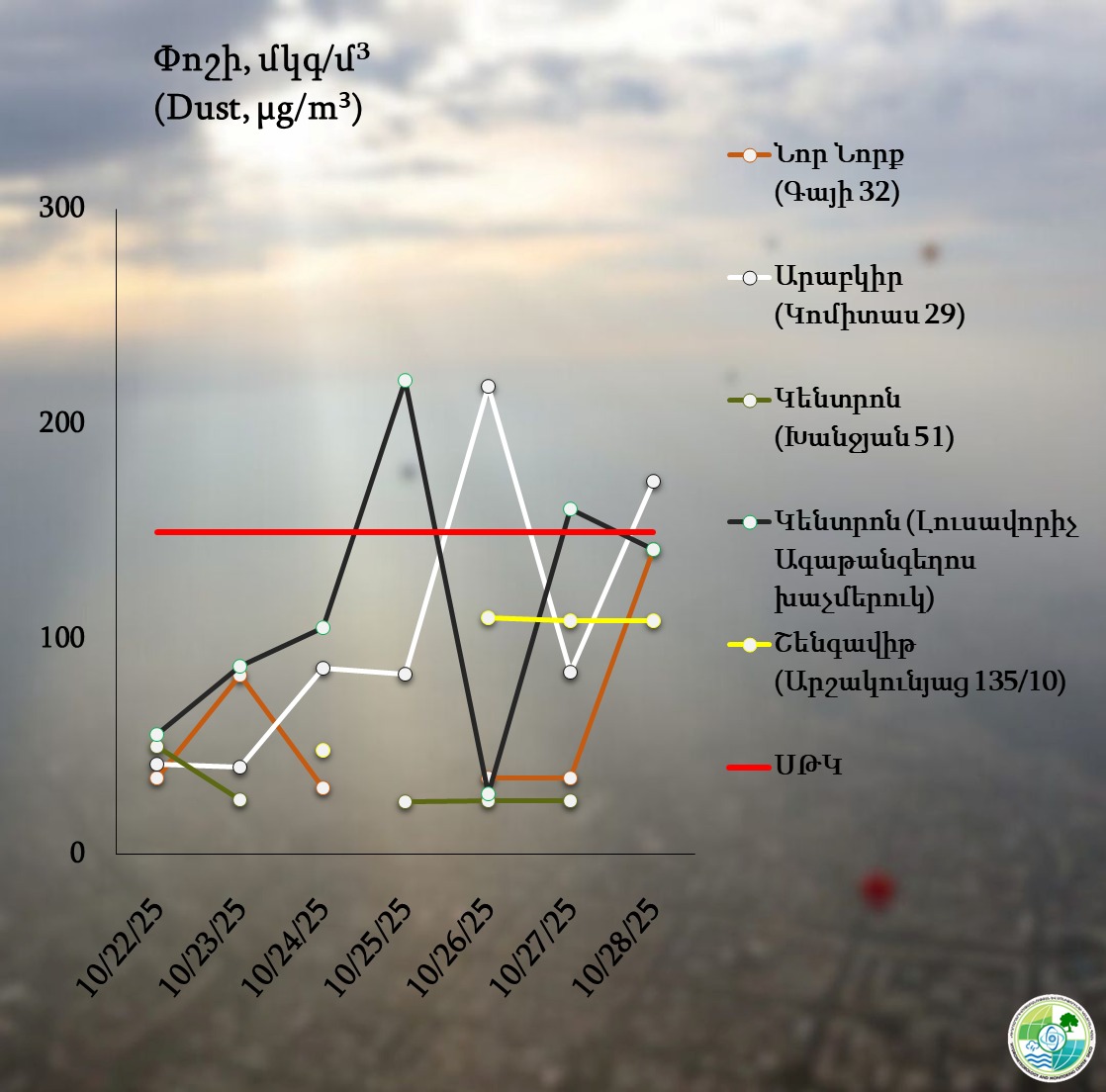 Երևանում մթնոլորտային օդի որակը հոկտեմբերի 22-28-ը (2025թ.)