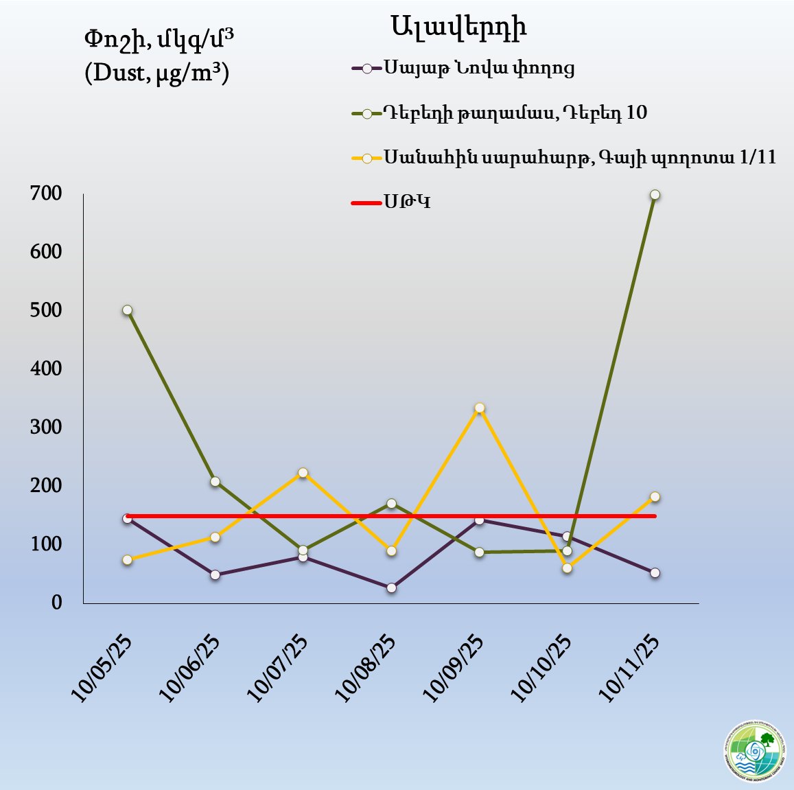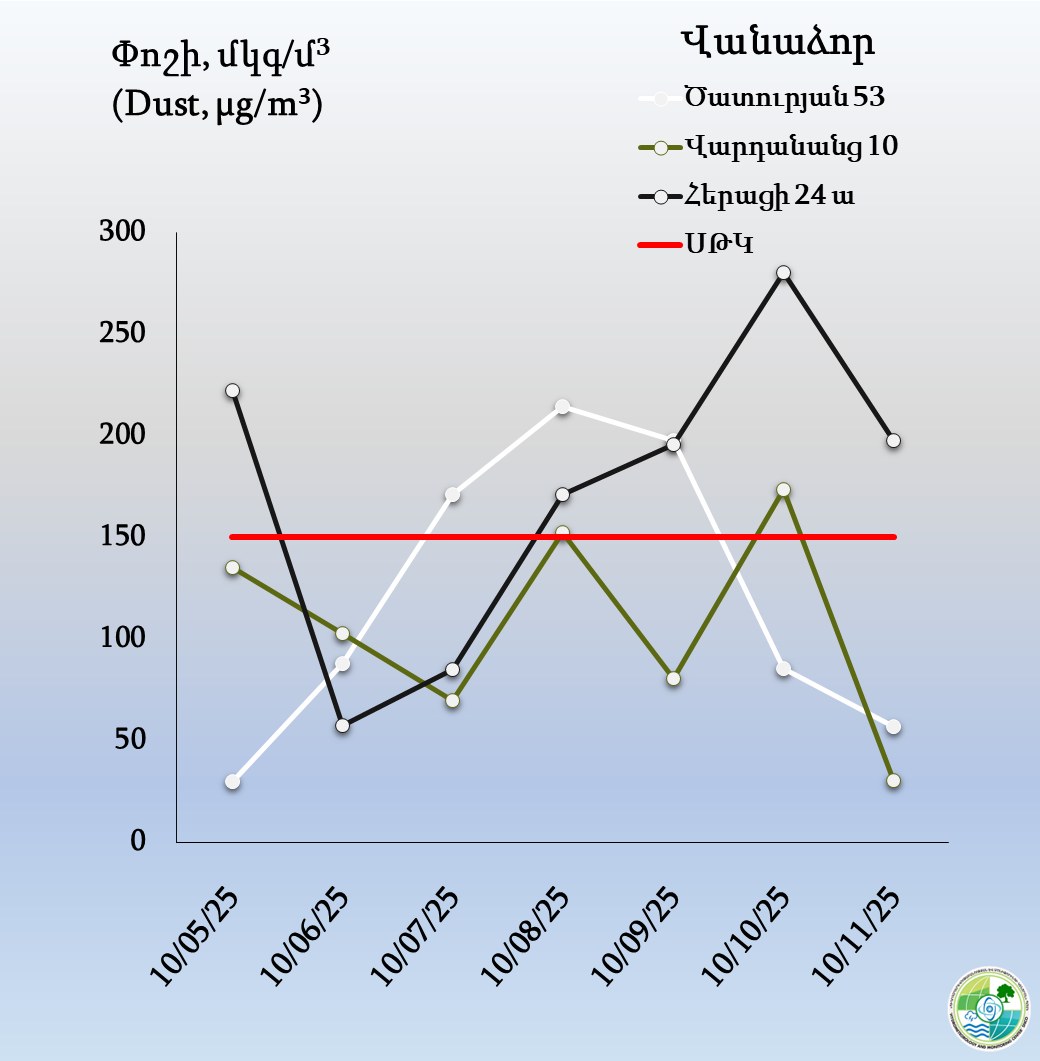 Քաղաքների մթնոլորտային օդում փոշու պարունակությունը հոկտեմբերի 5-11-ը (2025թ․)