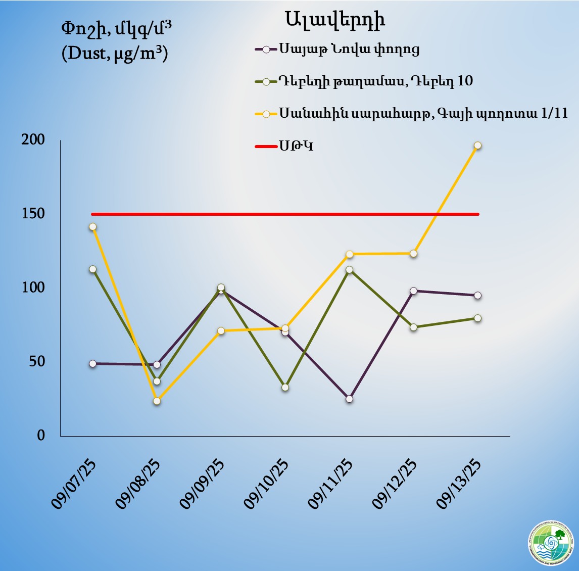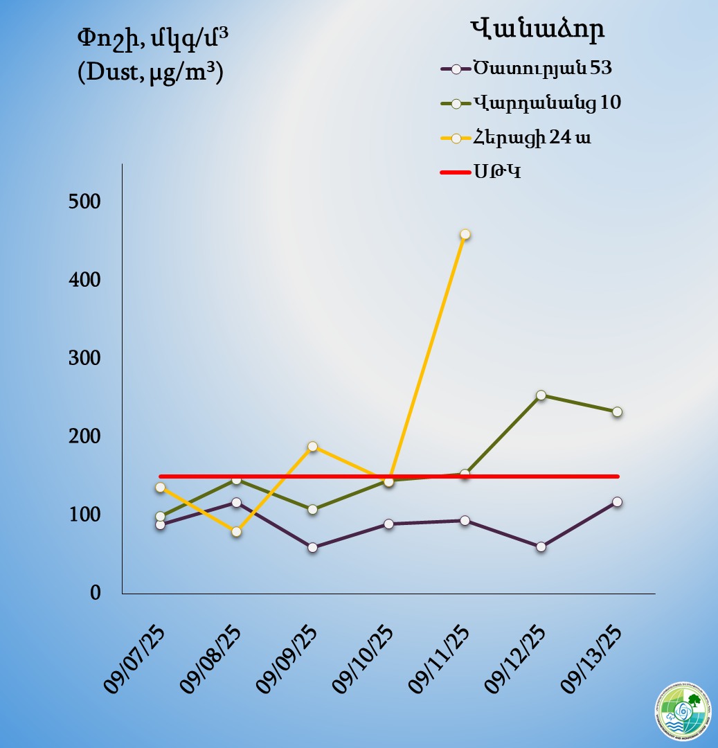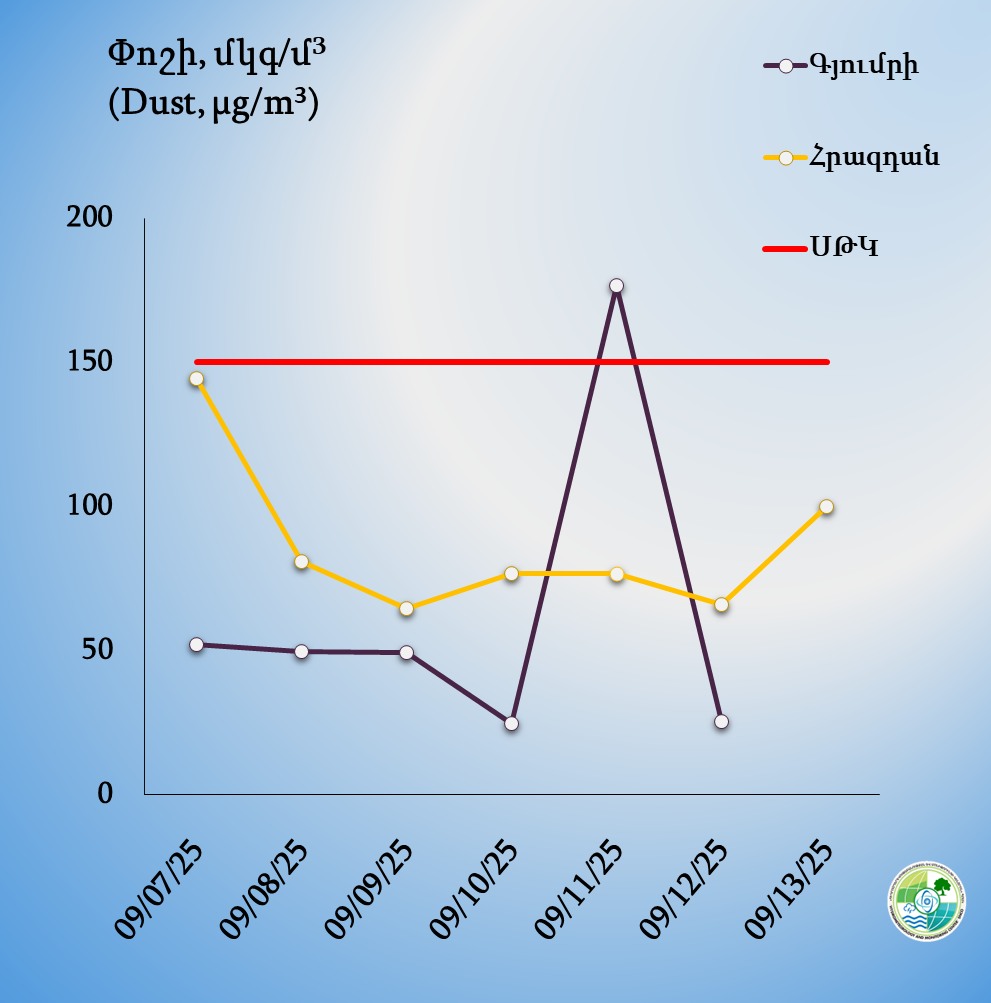 Քաղաքների մթնոլորտային օդում փոշու պարունակությունը սեպտեմբերի 7-13-ը (2025թ․)