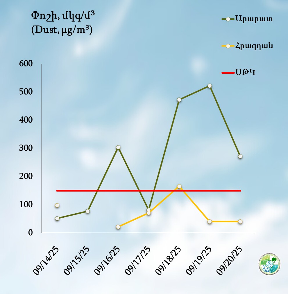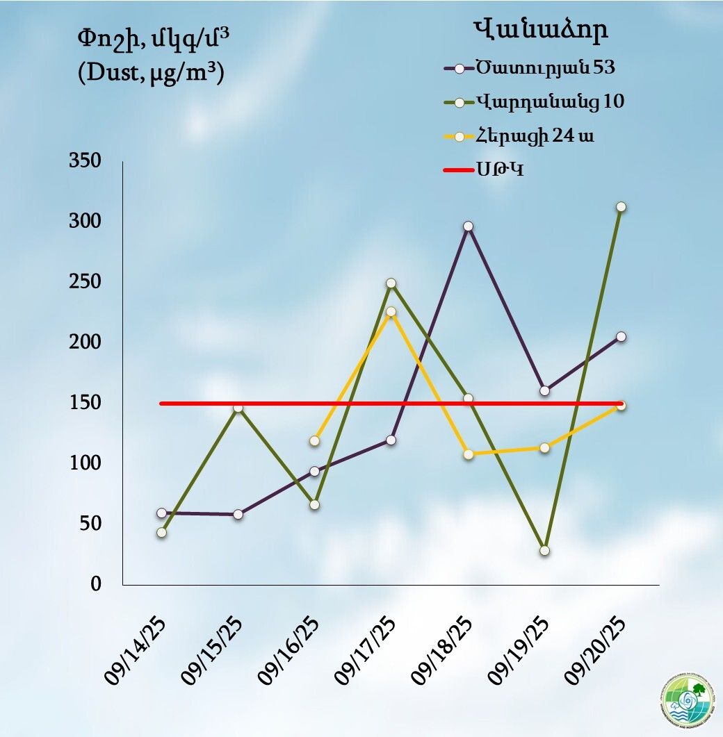 Քաղաքների մթնոլորտային օդում փոշու պարունակությունը սեպտեմբերի 14-20-ը (2025թ․)