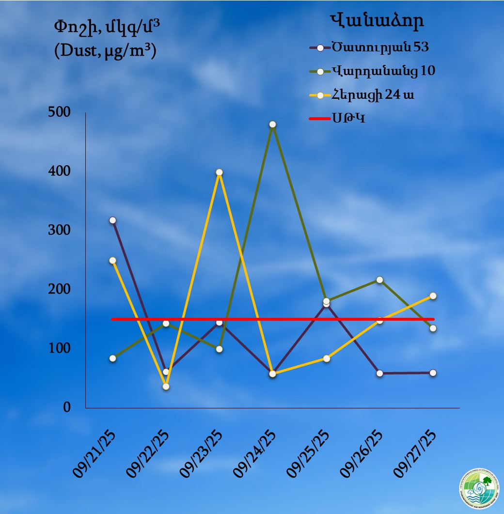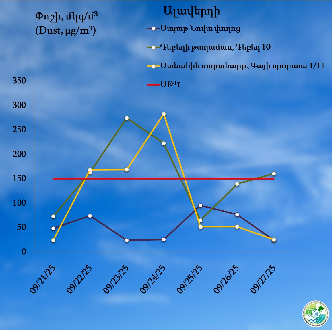 Քաղաքների մթնոլորտային օդում փոշու պարունակությունը սեպտեմբերի 21-27-ը (2025թ․)025թ․)