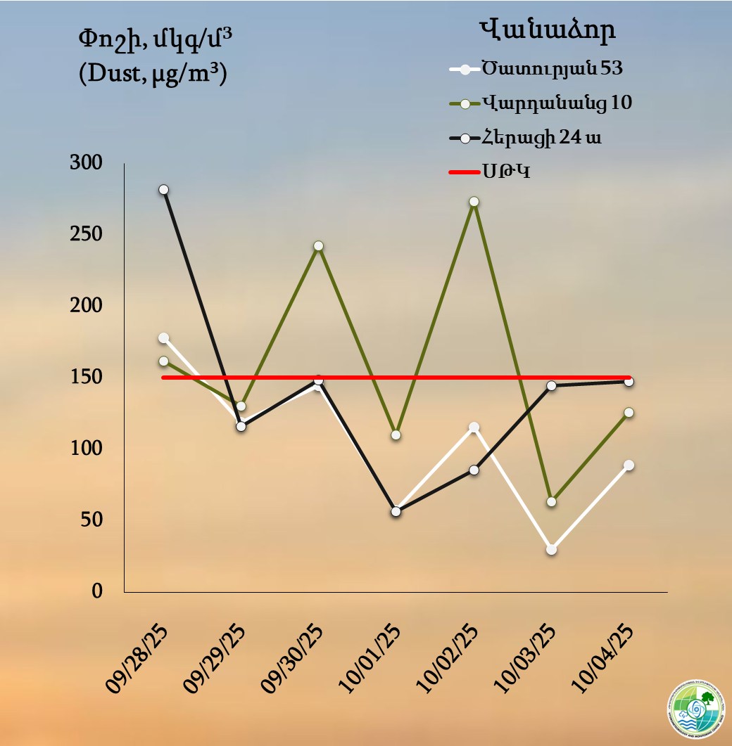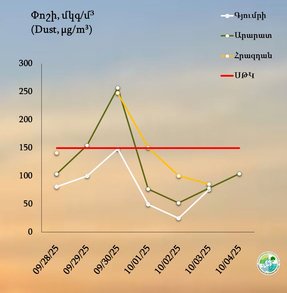 Քաղաքների մթնոլորտային օդում փոշու պարունակությունը սեպտեմբերի 28-ից հոկտեմբերի 4-ը (2025թ․)