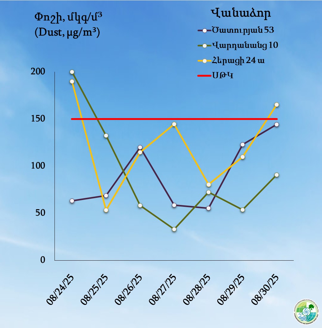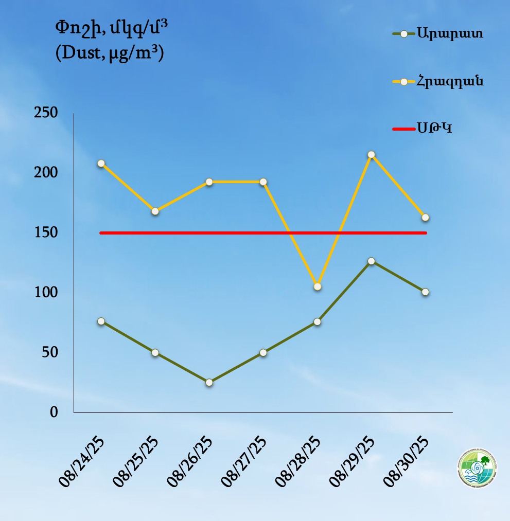 Քաղաքների մթնոլորտային օդում փոշու պարունակությունը օգոստոսի 24-30-ը (2025թ․)