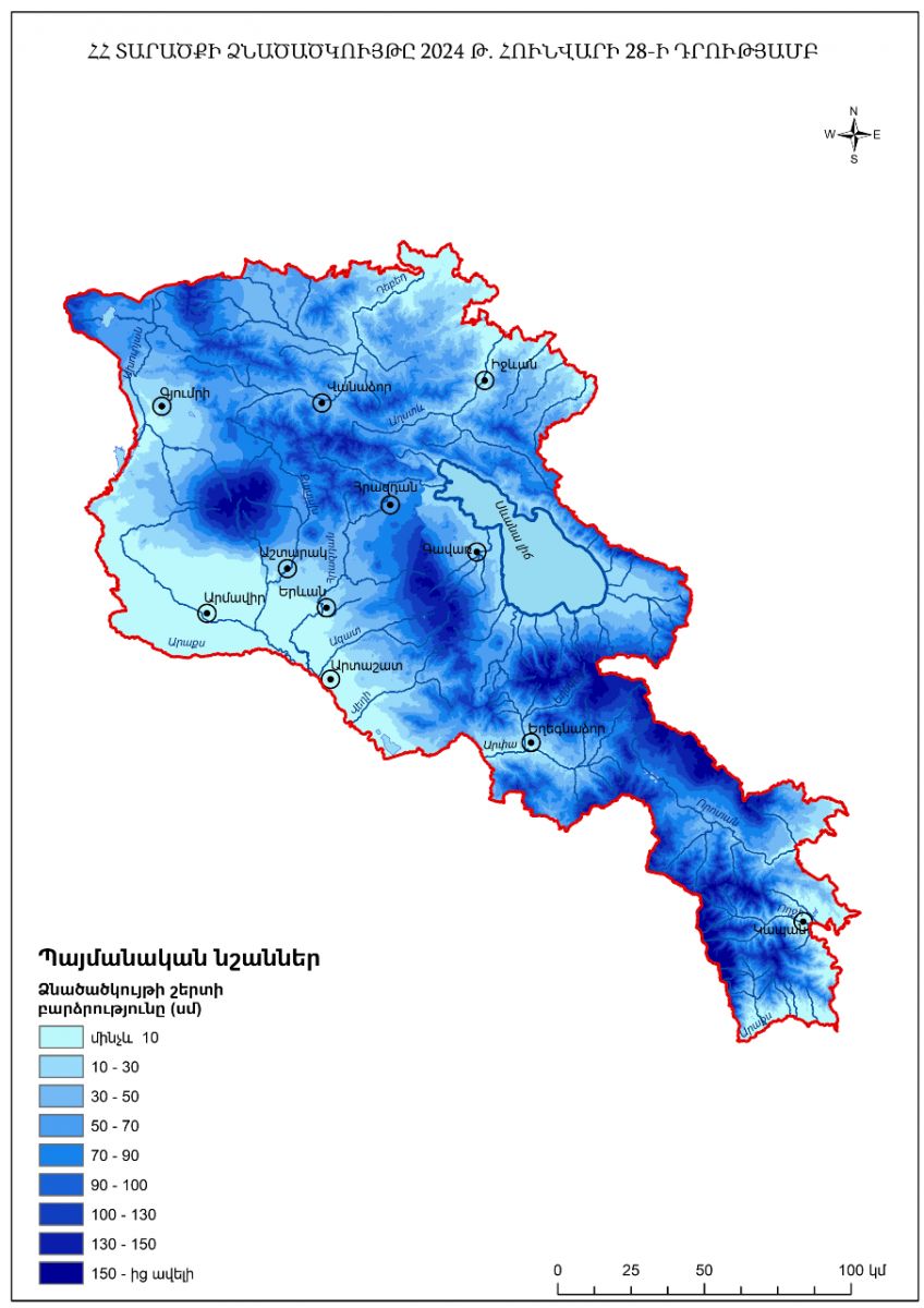 Կիպրոսյան ցիկլոնի գործունեությամբ պայմանավորված` հունվարի 22-27-ը հանրապետության ամբողջ տարածքում դիտվել են ձյան առատ տեղումներ։ Ձյան ծածկի բարձրությունը հանրապետության մեծ մասում այդ ժամանակահատվածում աճել է 20-30սմ-ով, Արարատյան դաշտում և նախալեռնային հատվածում՝ 10-15սմ-ով, իսկ առանձին բարձր լեռնային շրջաններում՝ 50-80սմ-ով։