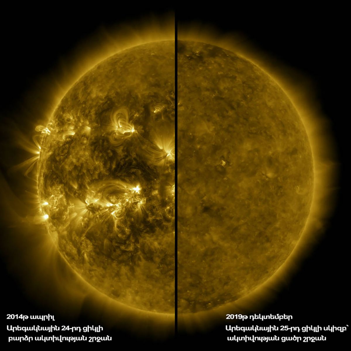 Ժամանակակից չափման մեթոդների շնորհիվ, հնարավոր եղավ պարզել Արեգակի մագնիսական դաշտի բևեռացման փոփոխությունը, հետևաբար ցիկլի սկիզբ համարվում է դաշտի բևեռացումը փոխելու պահը։ Ներկայումս գտնվում ենք Արեգակնային 25-րդ ցիկլում, որը սկսվել է 2019 թվականի դեկտեմբերին։ Ըստ կանխատեսումների, այն իր ակտիվության գագաթնակետին կհասնի 2025 թվականին։