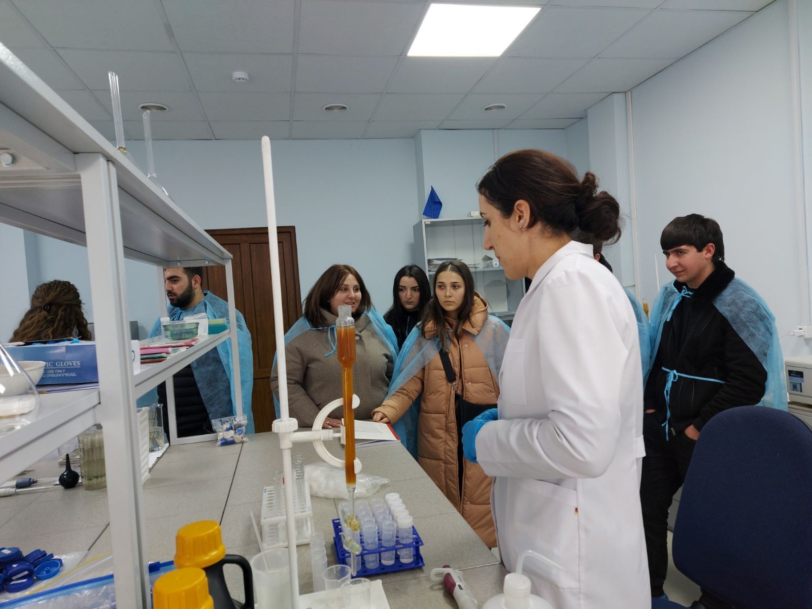 Ապագա մասնագետները ևս մասնակցեցին այդ գործընթացին՝ որոշելով շրջակա միջավայրի տարրերի աղտոտվածությունը։ Լաբորատորիայի մասնագետներն ուսանողներին ներկայացրեցին ոչ միայն նմուշառումից մինչև վերջնական տվյալ ստանալու պրոցեսը, այլ նաև բացատրեցին, թե այդ տվյալների միջոցով ինչպես է որոշվում շրջակա միջավայրի աղտոտվածությունը։ Ուսանողների ներգրավմամբ քննարկվեցին Հայասատանի բնապահպանական խնդիրները՝ անդրադառնալով այն թեժ կետերին, որտեղից ստացված տվյալները մտահոգիչ են։ Այցելության ընթացքում «ՀՄԿ» ՊՈԱԿ-ի Օրհուս կենտրոնի կողմից կազմակերպվեց նաև դասընթաց «Էկոհամակարգային ծառայությունները և դրանց խորհրդանիշները» թեմայով։ Ստացած գիտելիքներն ամրապնդվեցին էկոհամակարգային ծառայությունների խորհրդանիշերին առնչվող ուսուցողական վարժությամբ։