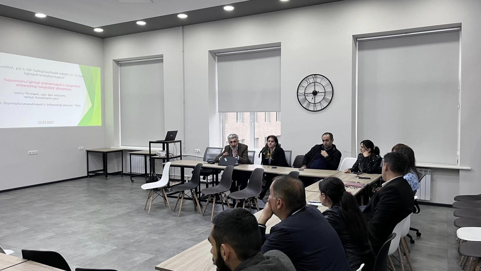 ՇՄՆ «Հիդրոօդերևութաբանության և մոնիթորնգի կենտրոն» ՊՈԱԿ-ի Կլիմայի ծառայության պետ Արթուր Գևորգյանը ներկայացրեց ծառայության աշխատանքները, ինչպես նաև գիտական ուսումնասիրություններ Հայաստանում կլիմայի փոփոխության, կլիմայի մոնիթորինգի և երաշտների գնահատման հարցերի վերաբերյալ։