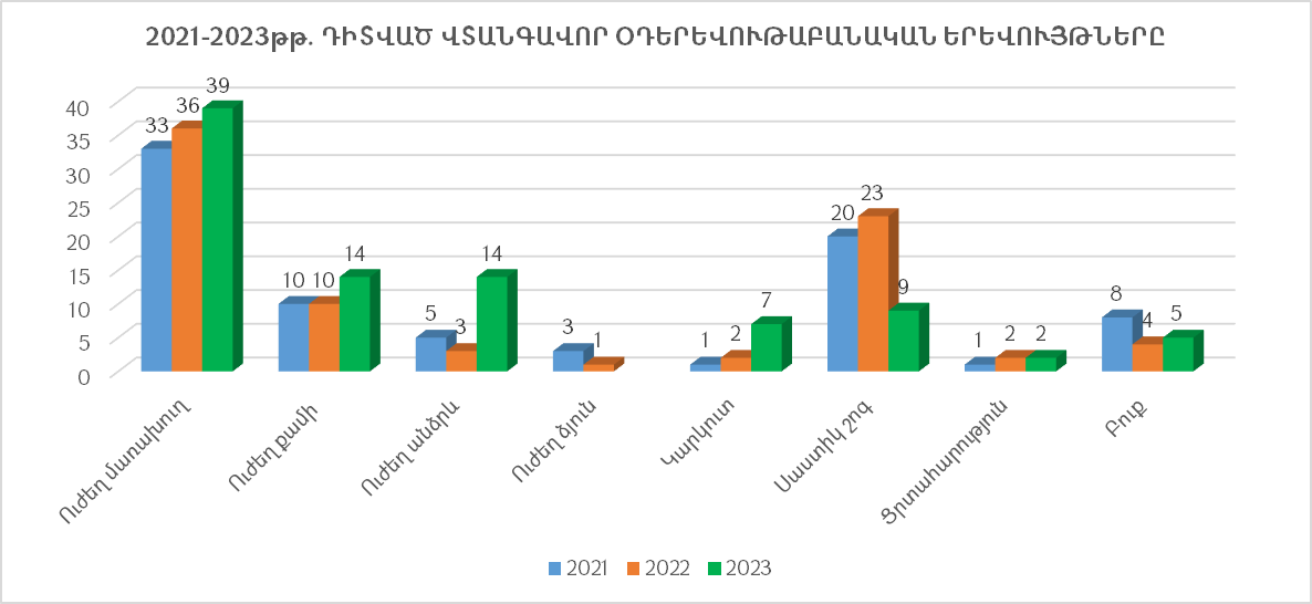 25.01.2024 ՀՀ տարածքում դիտված վտանգավոր օդերևութաբանական երևույթների քանակը՝ 2021, 2022, 2023 թվականներին