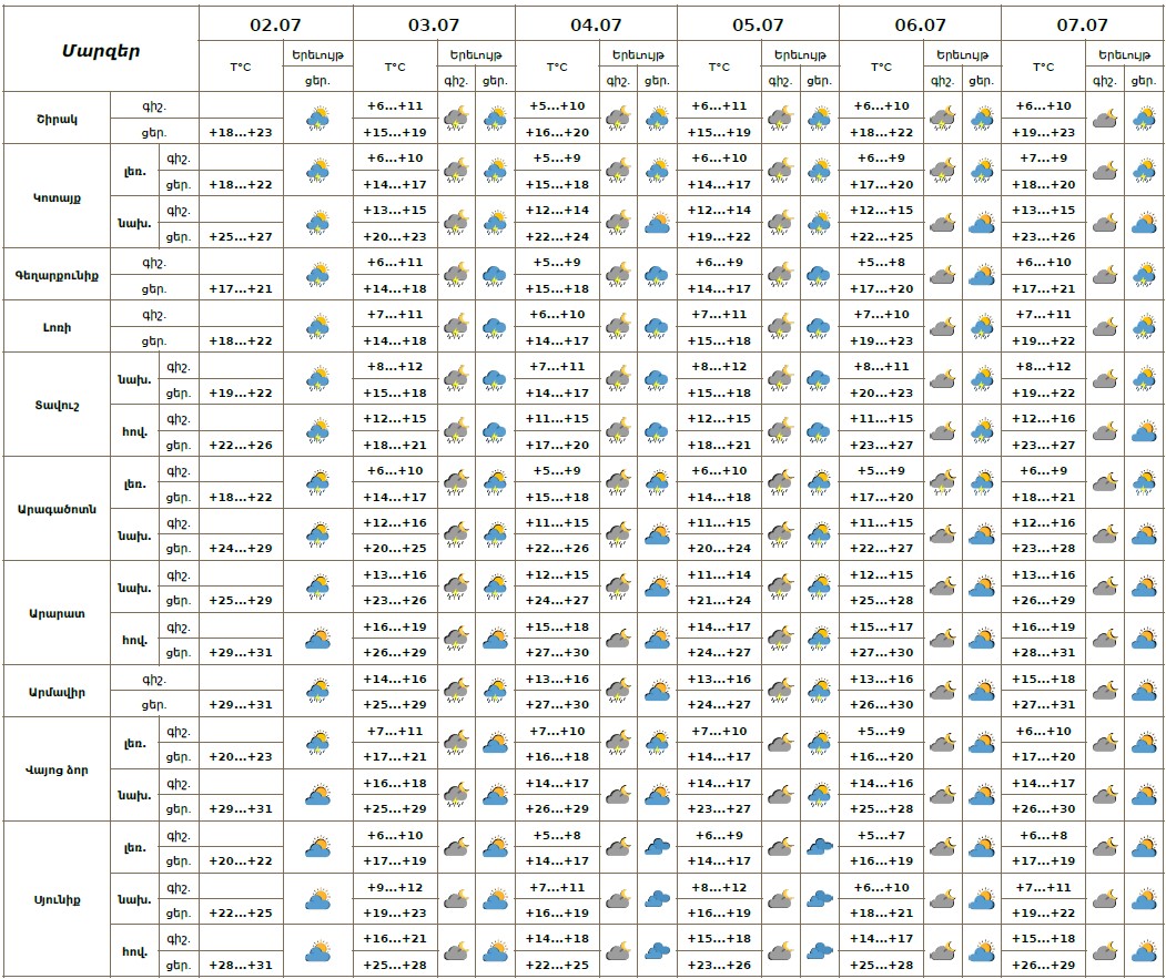 Օդի ջերմաստիճանը հուլիսի 2-5-ին աստիճանաբար կնվազի 5-7 աստիճանով։