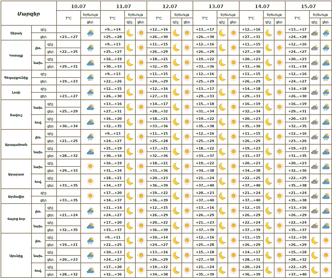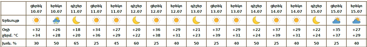 Օդի ջերմաստիճանը հուլիսի 10-ի ցերեկը, 11-14-ին աստիճանաբար կբարձրանա 6-9 աստիճանով։