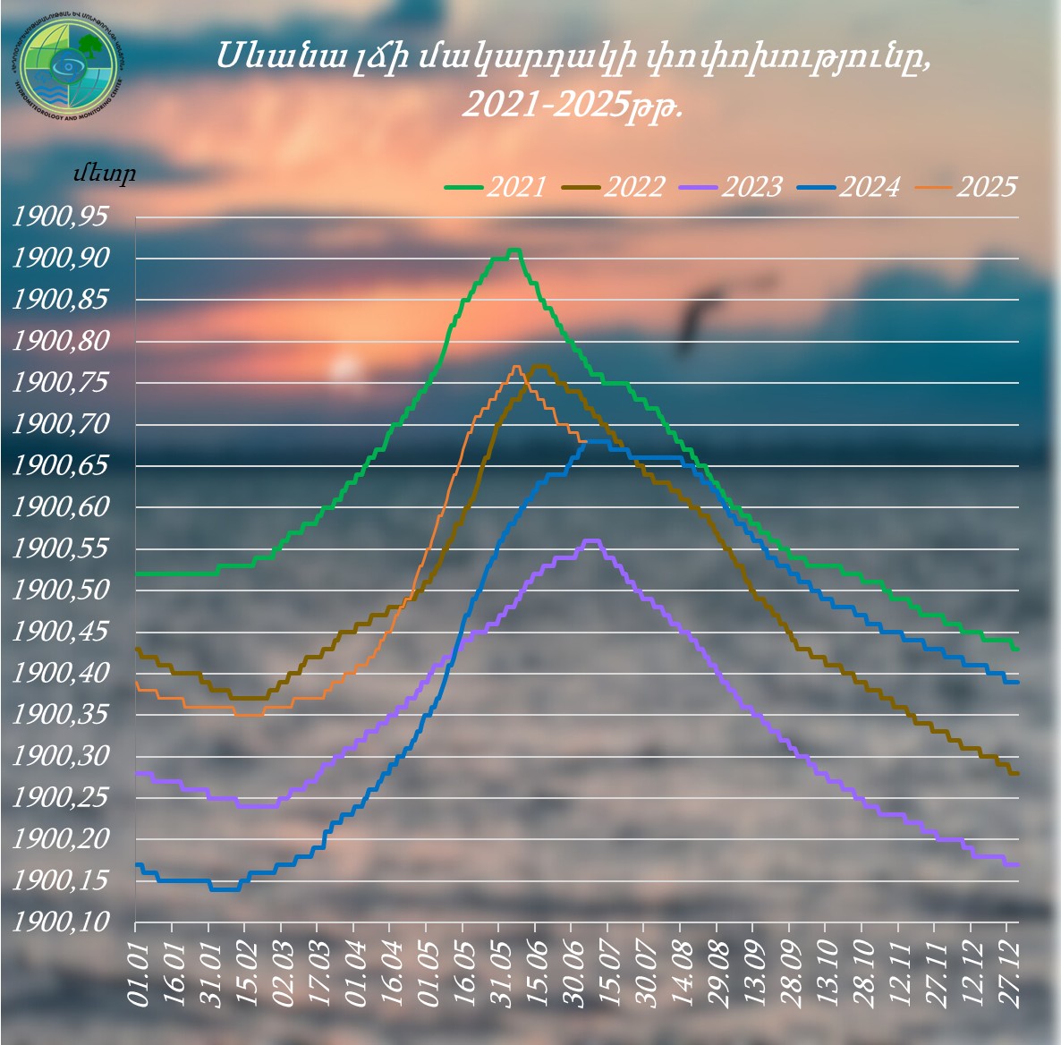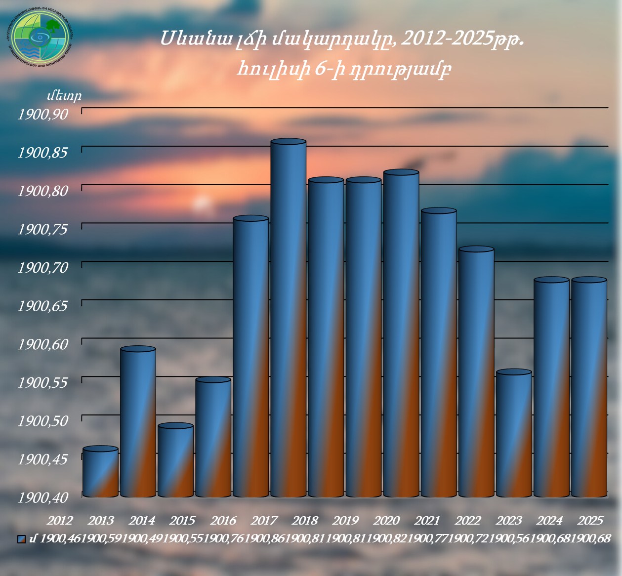Սևանա լճի մակարդակը 2025 թվականի հունիսի 30-ից հուլիսի 6-ն ընկած ժամանակահատվածում իջել է 1 սմ-ով և կազմել՝ 1900.68 մ (06.07.25թ․), որը հավասար է անցյալ տարվա նույն օրվա մակարդակին, իսկ 2025 թվականի հունվարի 1-ի մակարդակից բարձր է 29 սմ-ով։