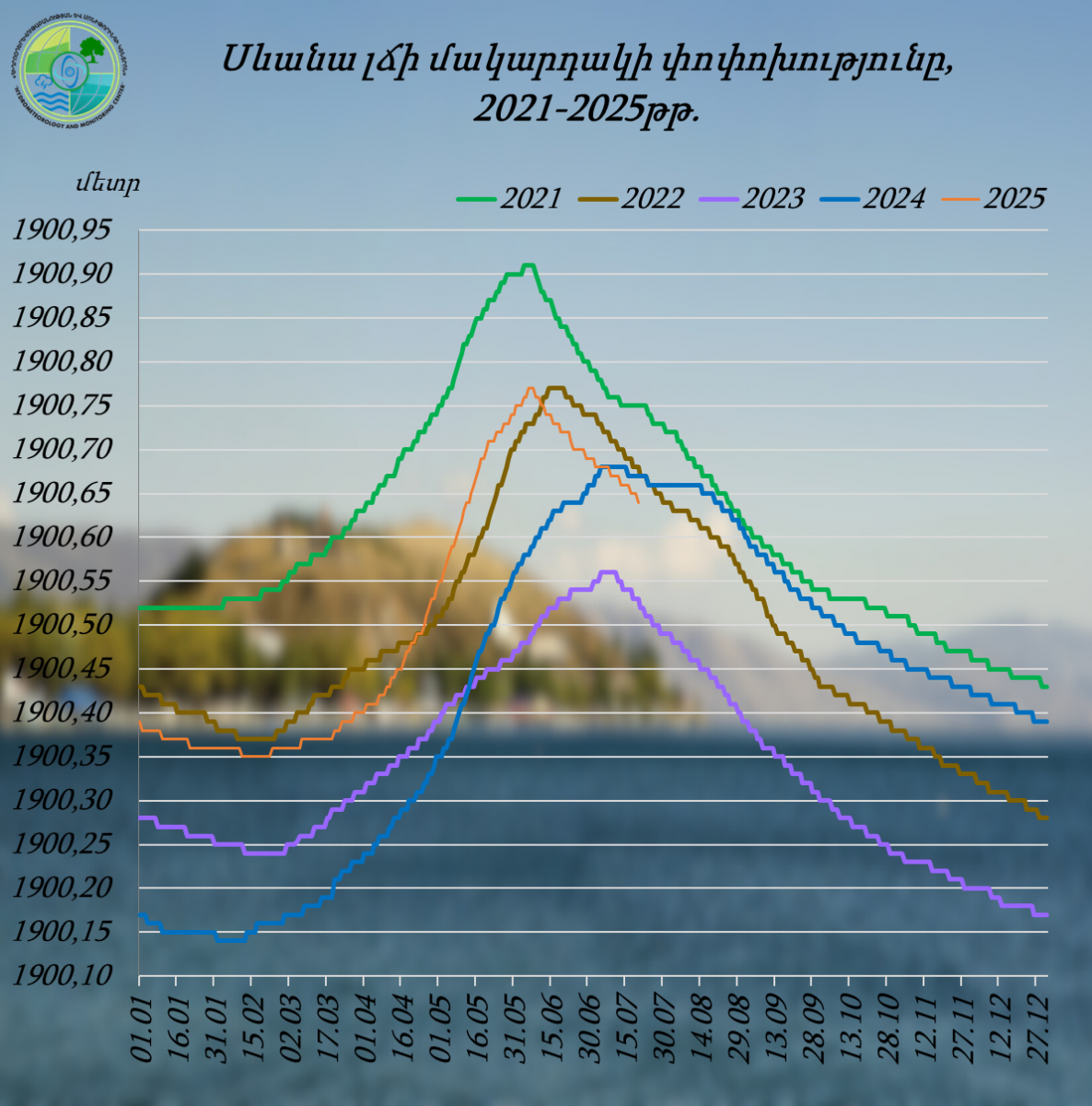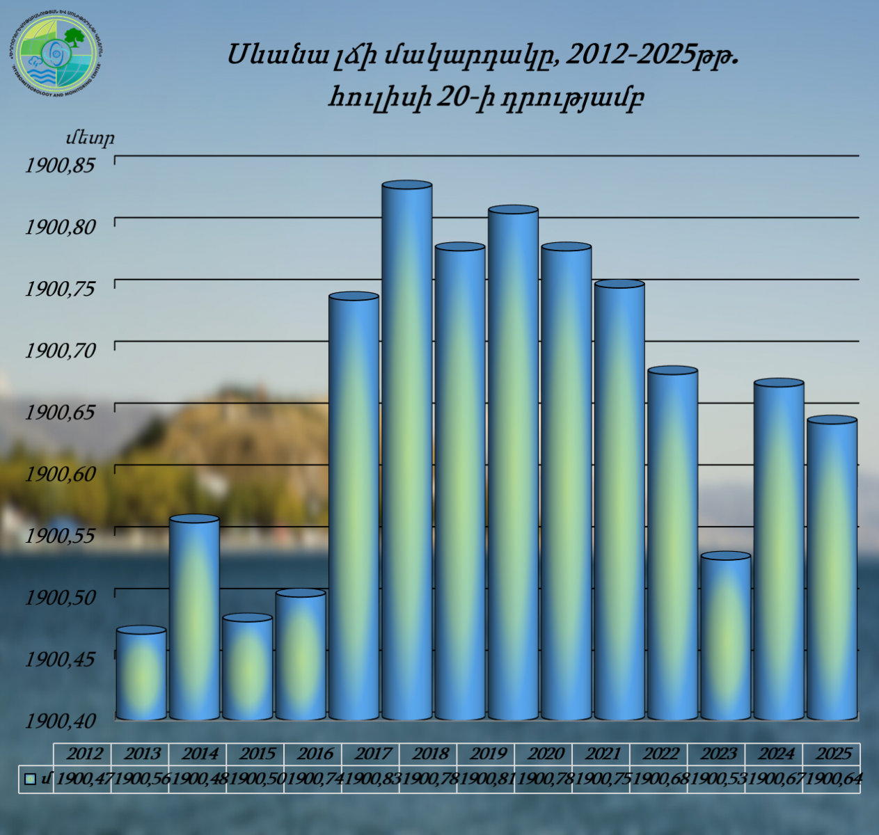 Սևանա լճի մակարդակը 2025 թվականի հուլիսի 14-20-ն ընկած ժամանակահատվածում իջել է 2 սմ-ով և կազմել՝ 1900.64 մ (20.07.25թ․), որն անցյալ տարվա նույն օրվա մակարդակից ցածր է 3 սմ-ով, իսկ 2025 թվականի հունվարի 1-ի մակարդակից բարձր է 25 սմ-ով։
