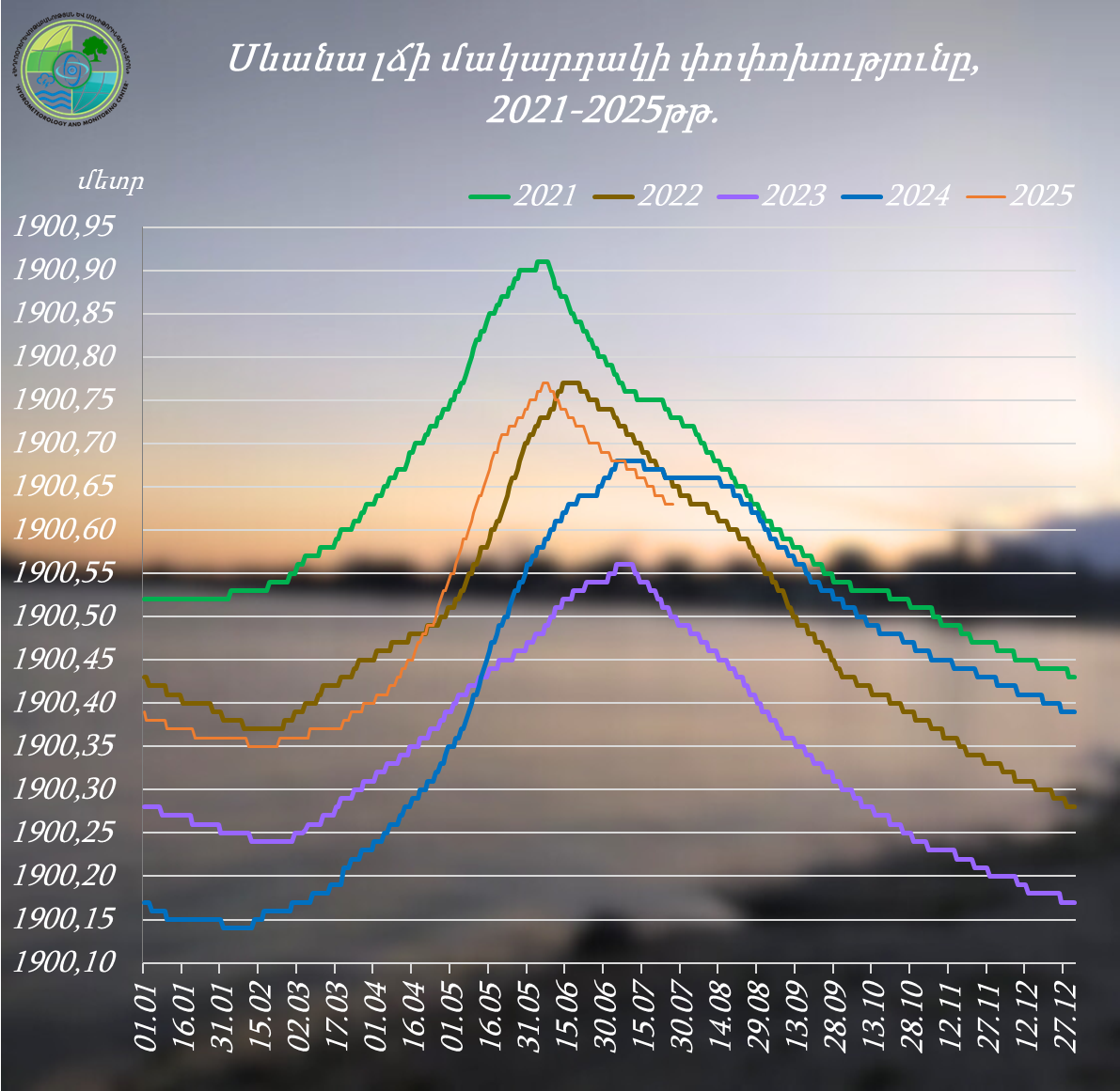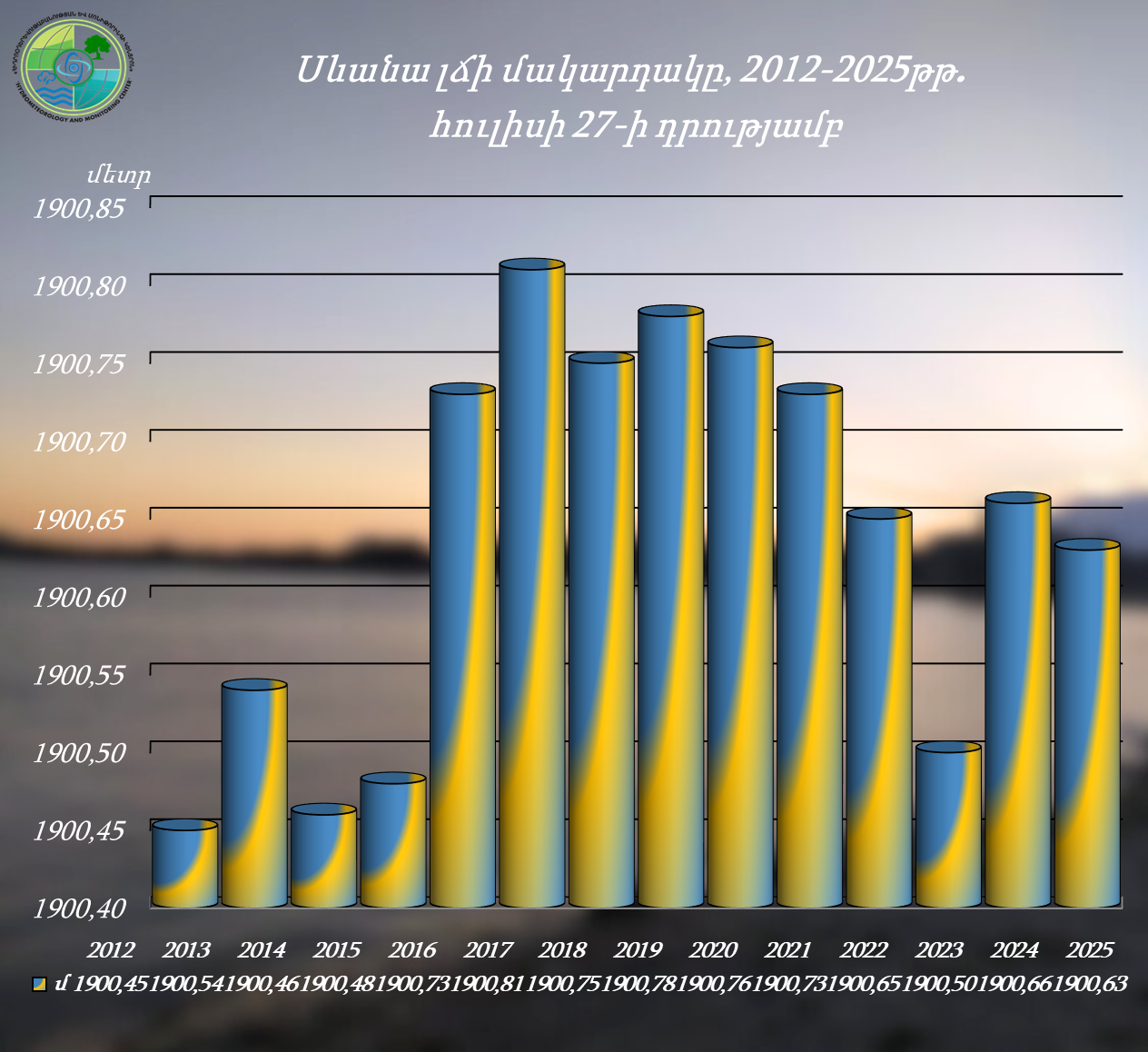 Սևանա լճի մակարդակը 2025 թվականի հուլիսի 21-27-ն ընկած ժամանակահատվածում իջել է 1 սմ-ով և կազմել՝ 1900.63 մ (27.07.25թ․), որն անցյալ տարվա նույն օրվա մակարդակից ցածր է 3 սմ-ով, իսկ 2025 թվականի հունվարի 1-ի մակարդակից բարձր է 24 սմ-ով։