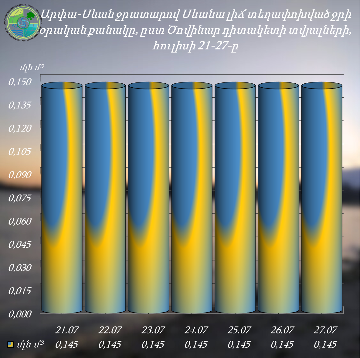 Սևանա լճից բացթողնված ջրի ծավալը ըստ Հրազդան ՀԷԿ-ի ուղղաթեք ջրանցքի Գեղամավան դիտակետի հուլիսի 21-27-ը ներառյալ ընկած ժամանակահատվածում կազմել է 16.370 մլն.մ3, իսկ ընդհանուր գումարային բացթողումը՝ հունիսի 6-ից հուլիսի 27-ը ներառյալ՝ 97.615 մլն.մ3: