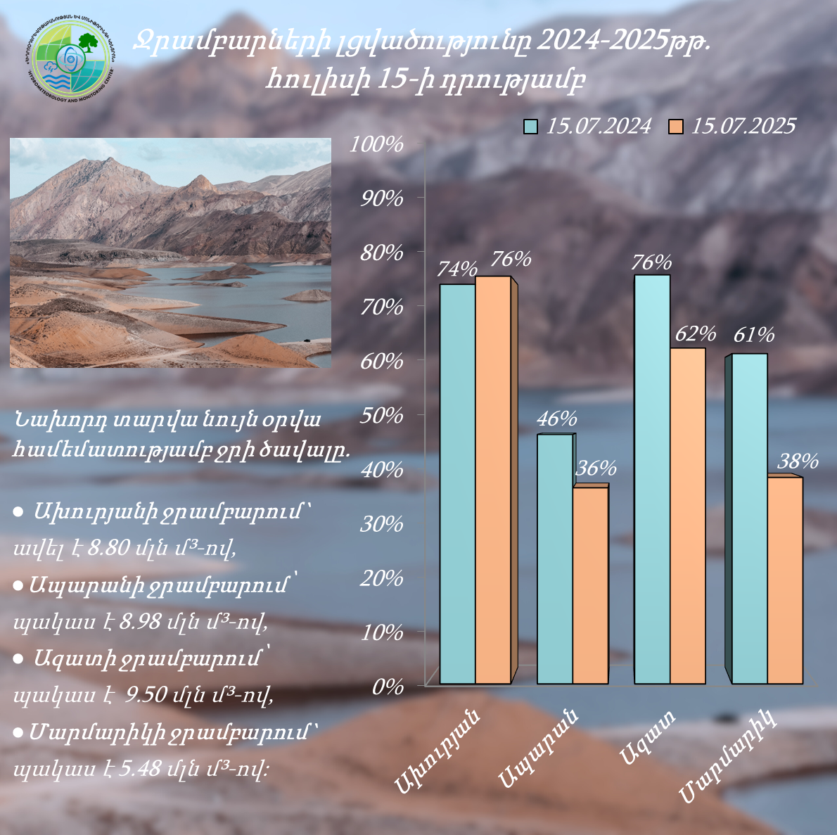 Ջրամբարների լցվածությունը հուլիսի 8-ի դրությամբ (2025թ.)