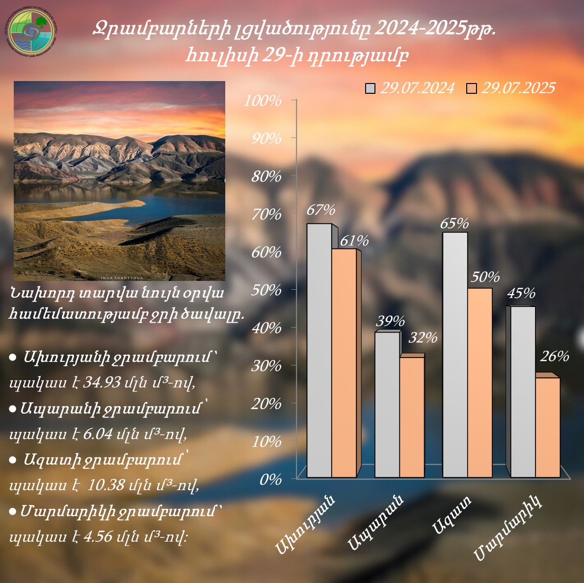 Ջրամբարների լցվածությունը հուլիսի 29-ի դրությամբ (2025թ.)