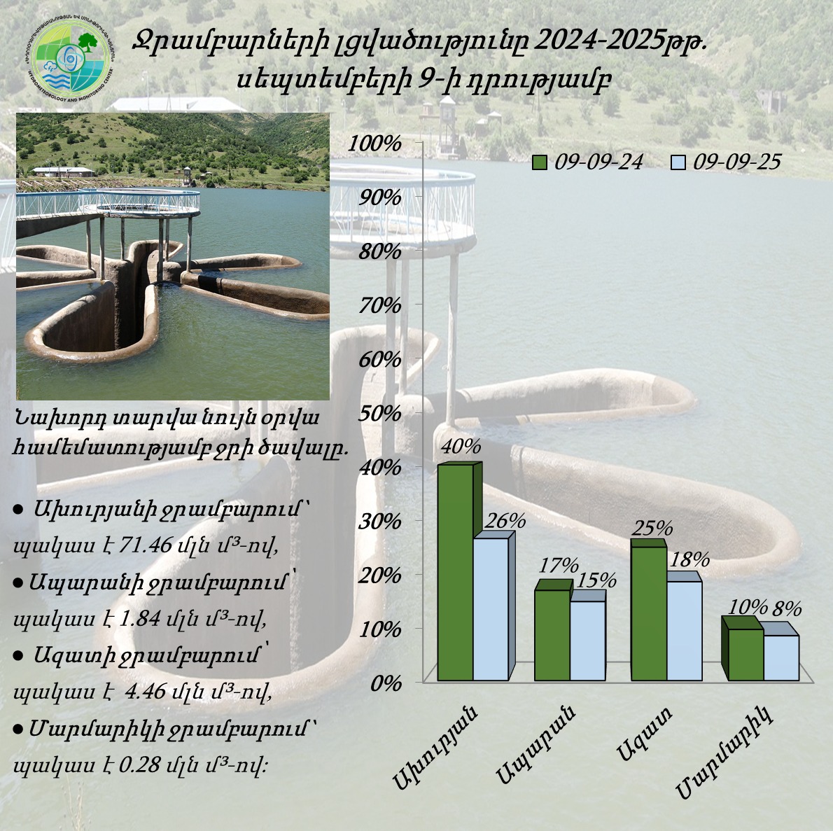 Ջրամբարների լցվածությունը սեպտեմբորի 9-ի դրությամբ (2025թ.)