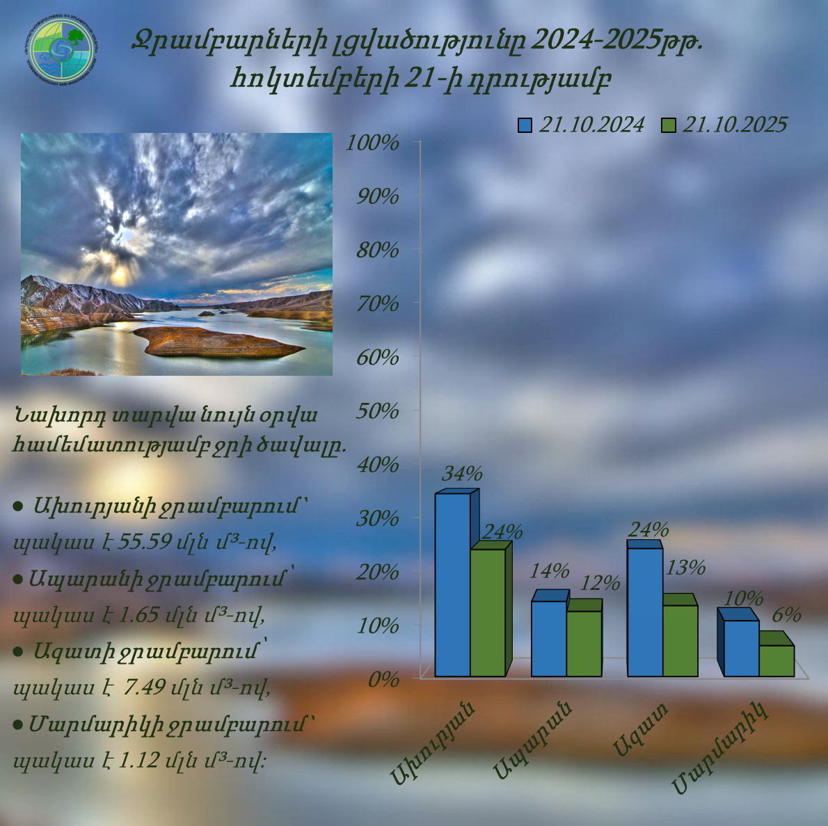 Ջրամբարների լցվածությունը հոկտեմբերի 21-ի դրությամբ (2025թ.)
